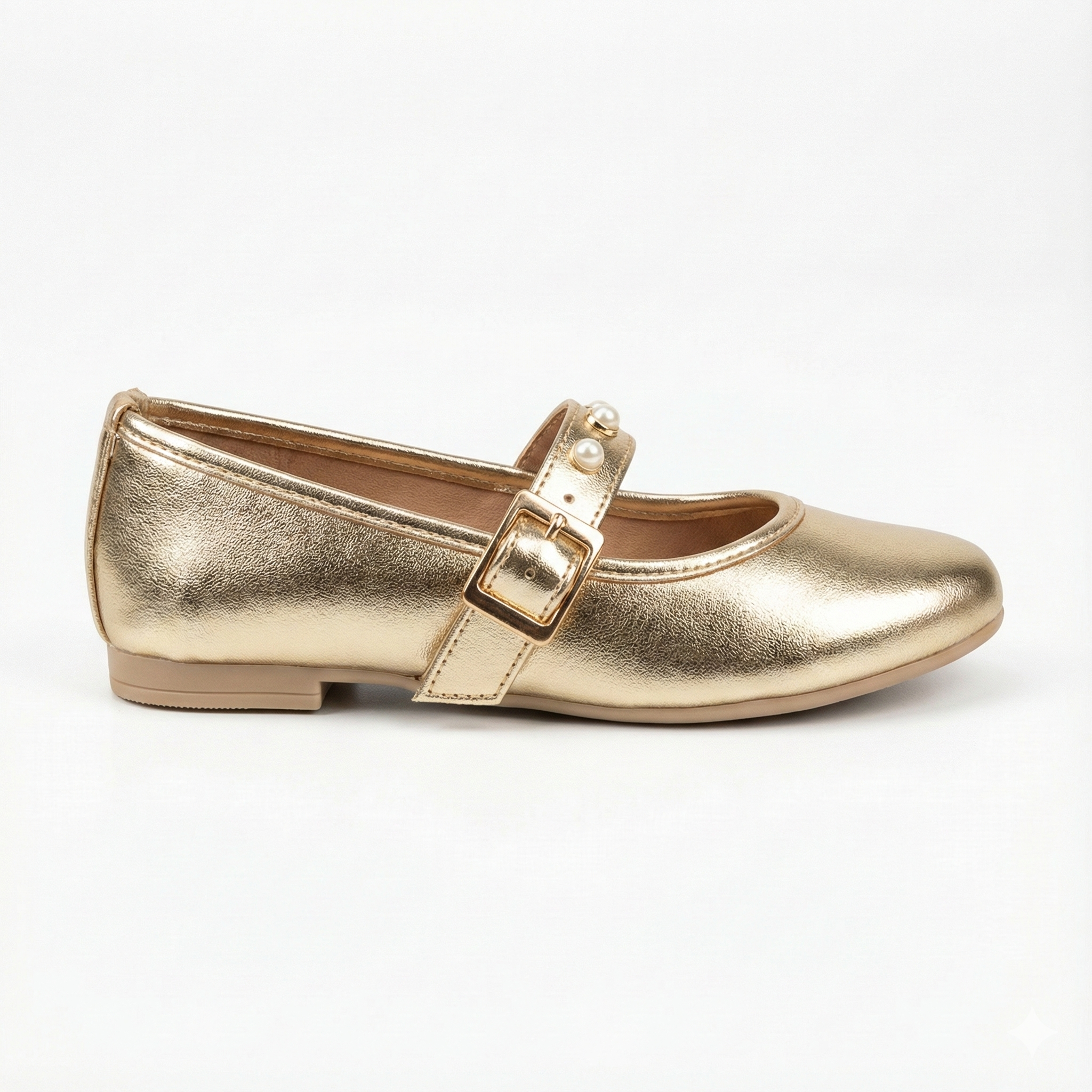 💎 Detalles de Joyería: La correa viene decorada con perlas y una hebilla dorada, convirtiendo el zapato en un verdadero accesorio de moda.