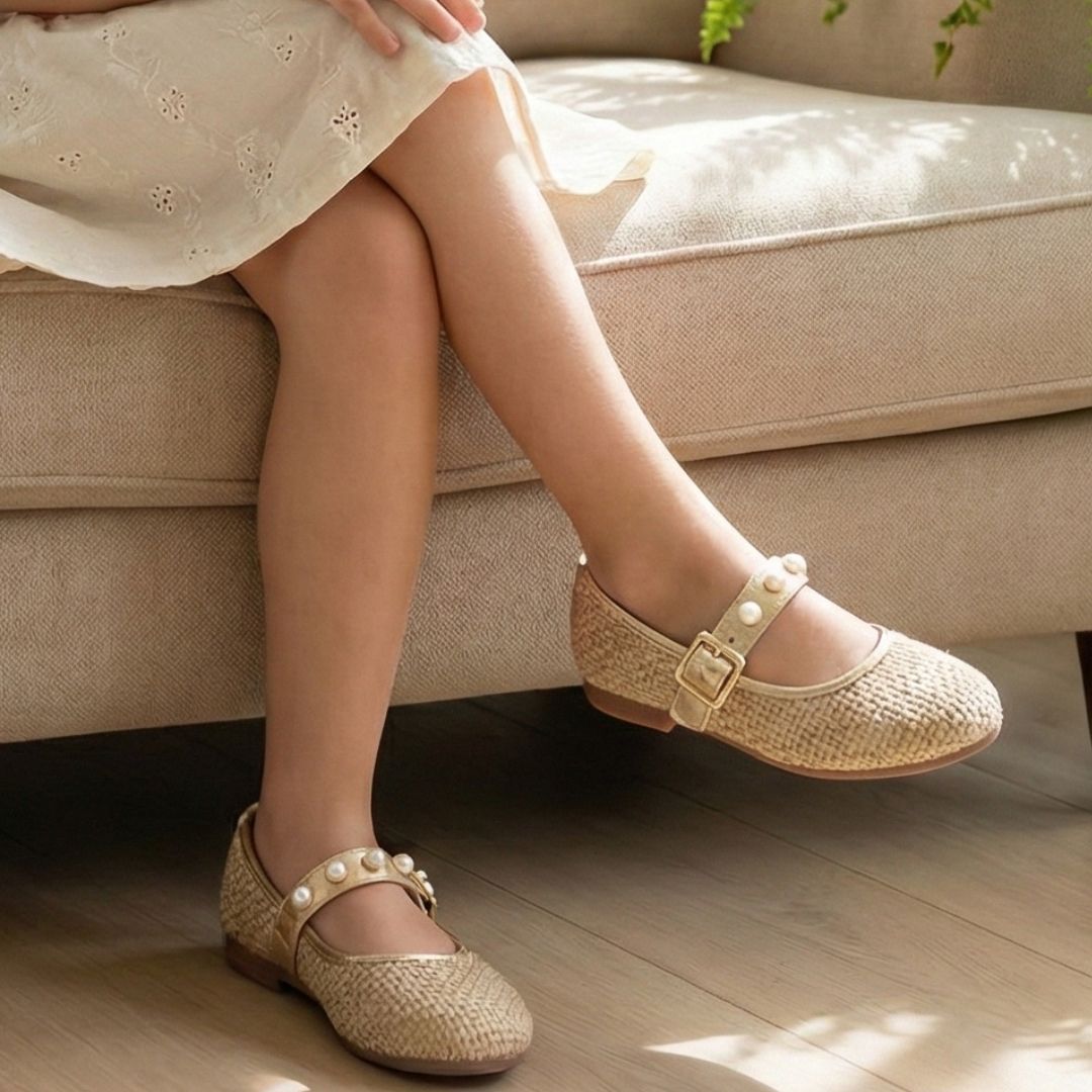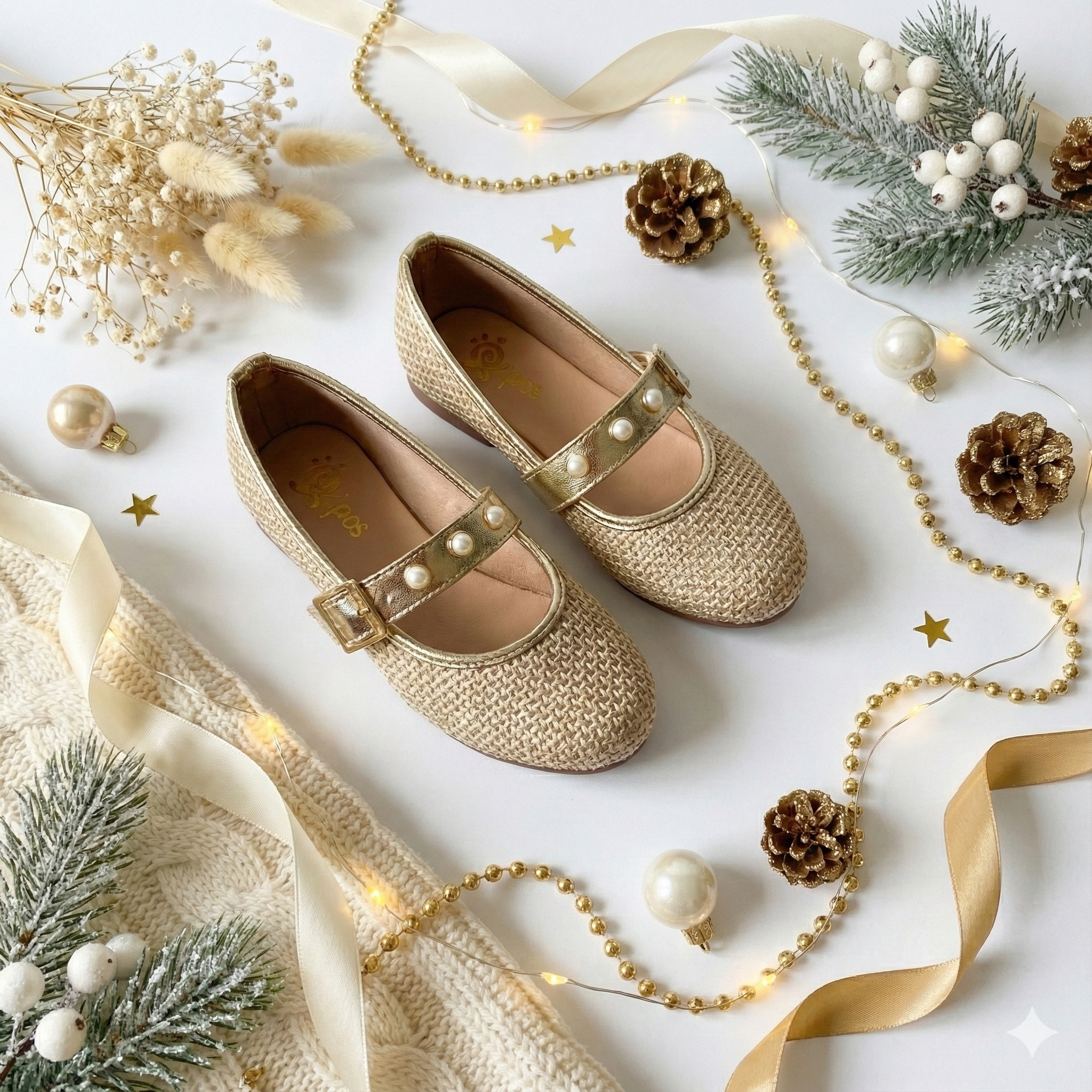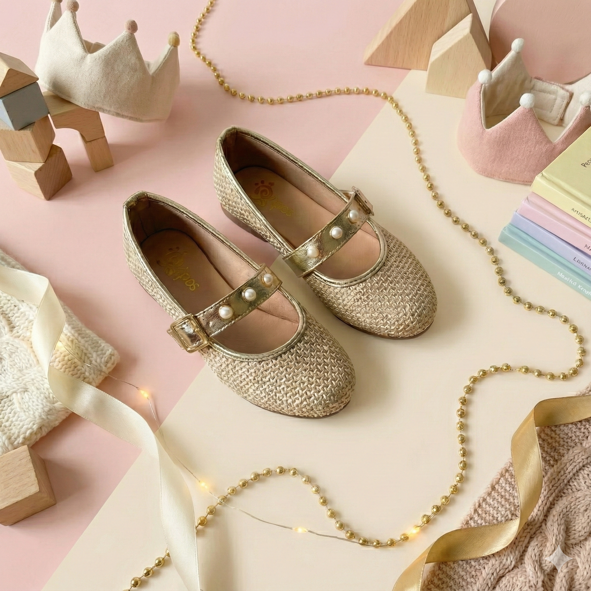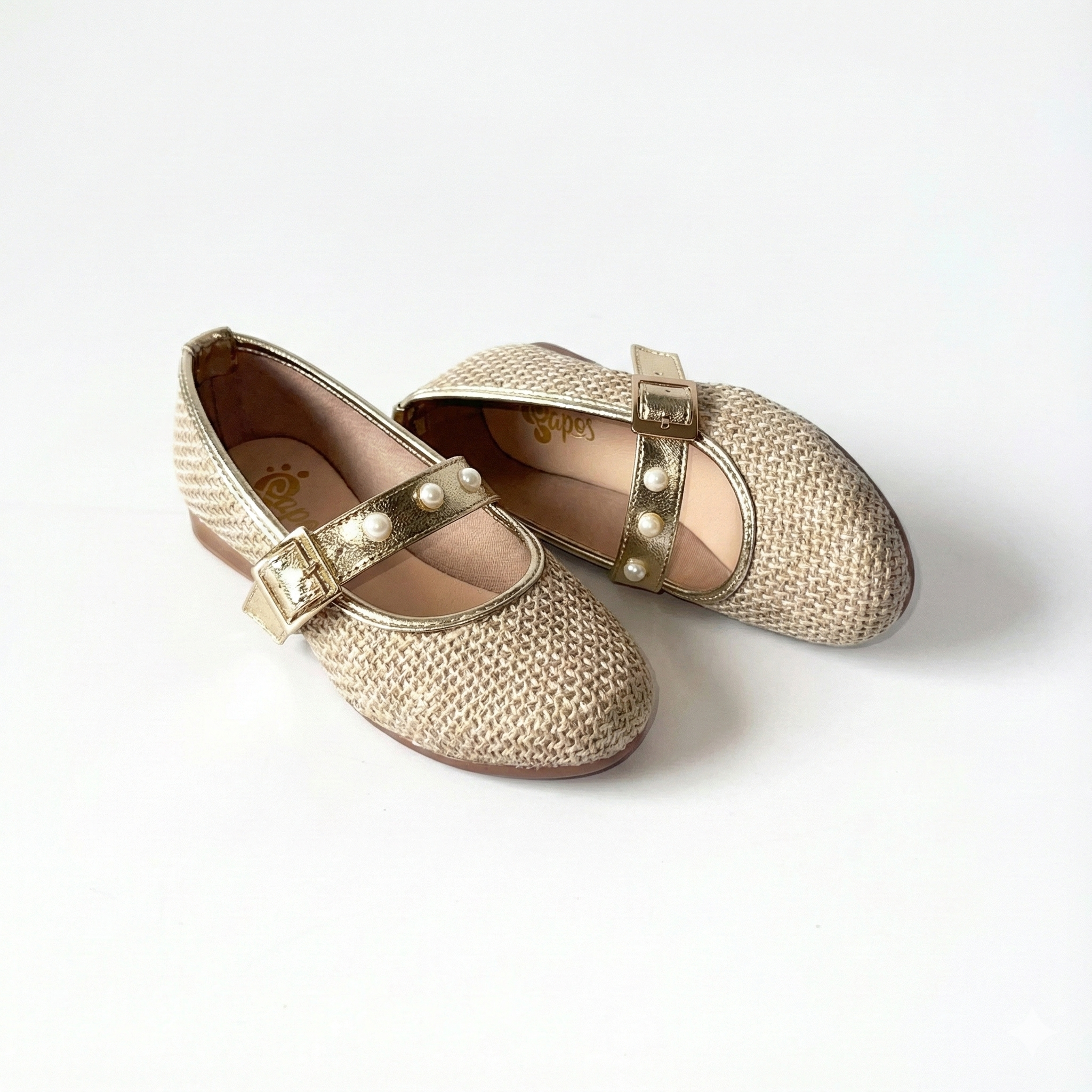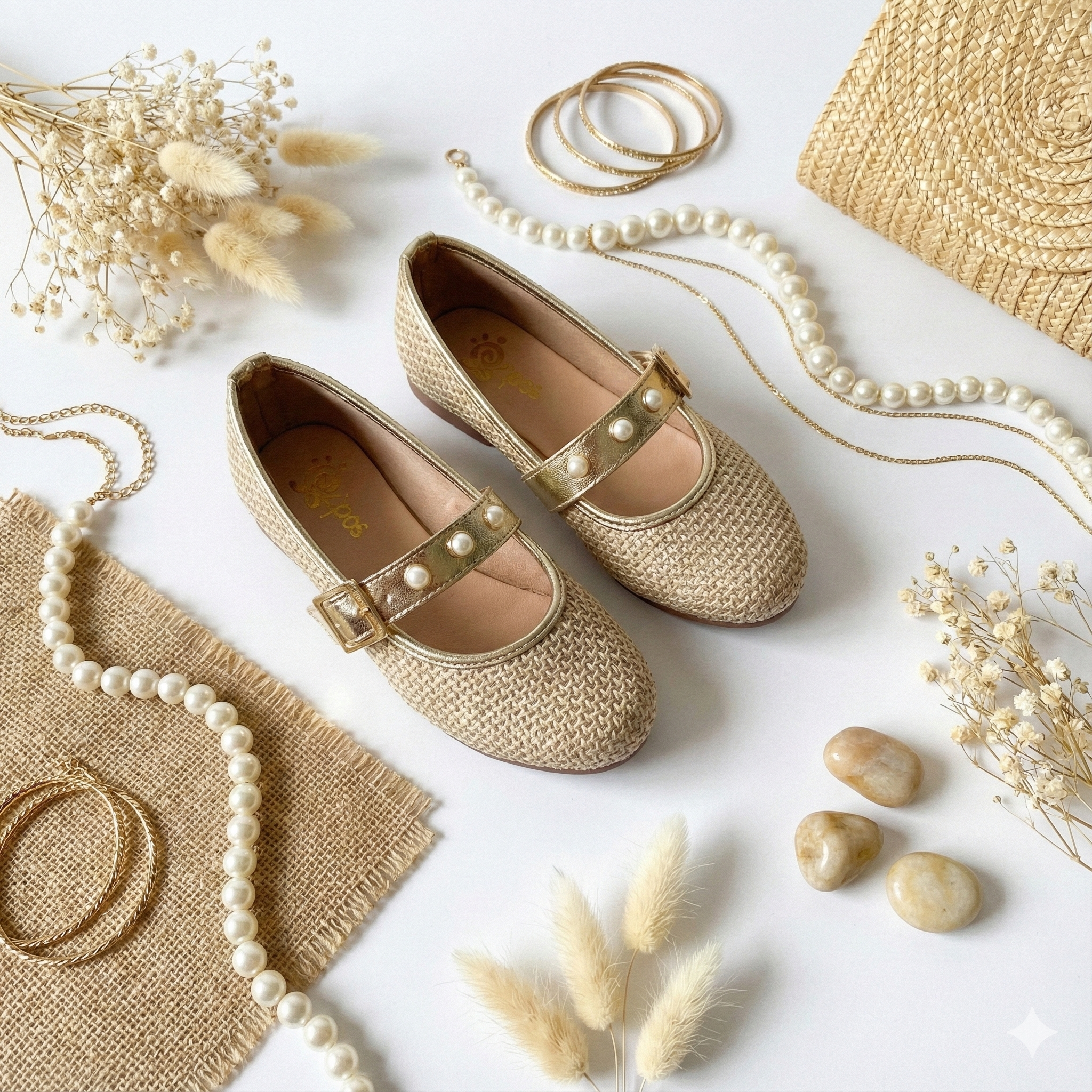 Baletas Niñas Alalá Rustic - Encanto natural, destellos dorados y dulzura en cada paso.