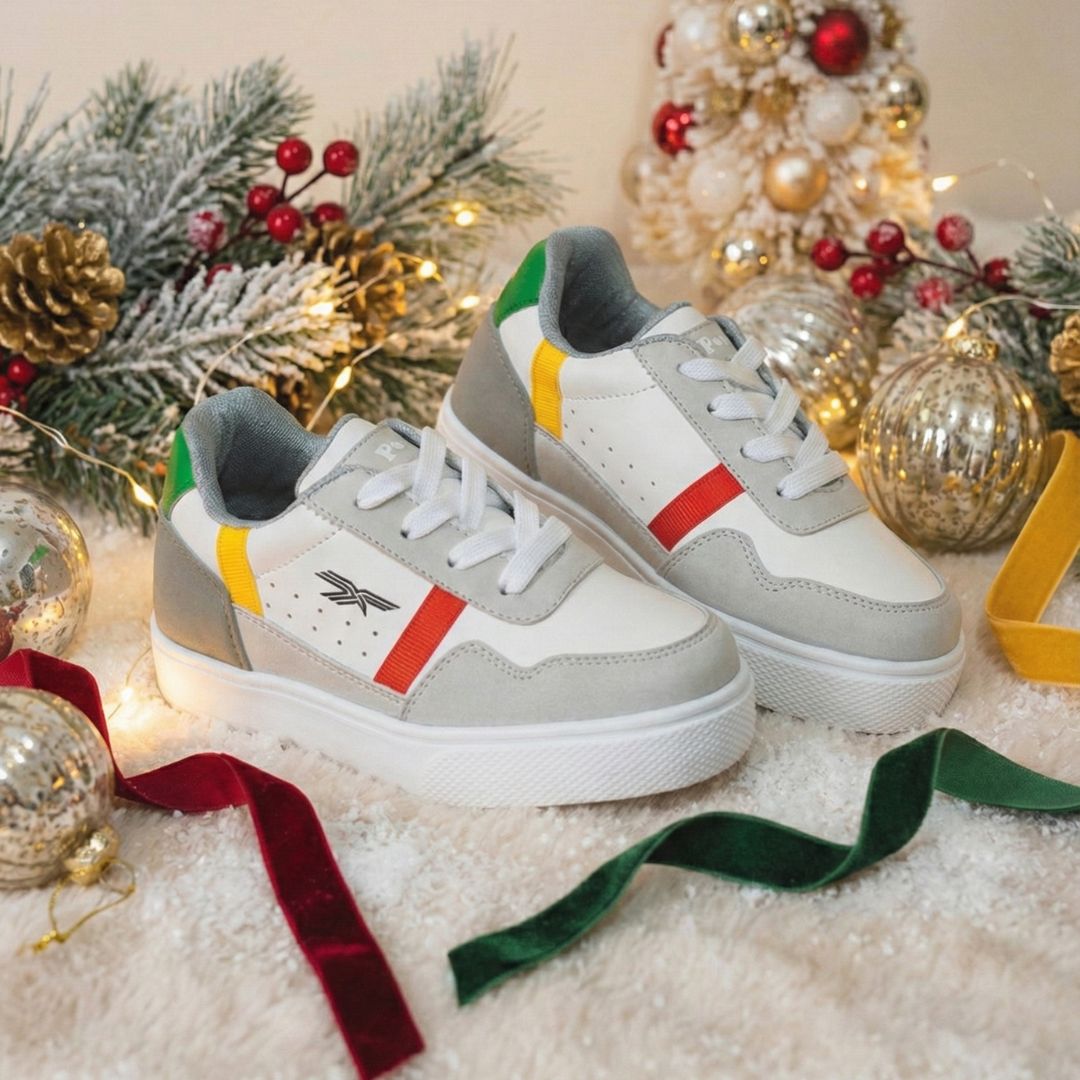 Explora la elegancia moderna y la versatilidad de nuestros Tenis Casuales Niños Revenge Blanco y Gris. La perfecta combinación de colores en blanco y gris, con sutiles toques de rojo, amarillo y verde, crea una paleta sofisticada y audaz.